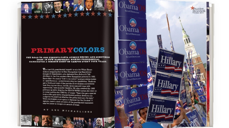 The last U.S. presidential hopeful to win the White House without stepping foot in New Hampshire was Republican Dwight D. Eisenhower, who defeated Sen. Robert A. Taft (R-Ohio) in the first modern New Hampshire primary in 1952. Since then the state’s “first in the nation” primary status makes it, and Hanover, a mandatory stop for candidates. “Students get a firsthand view of the parade of candidates and witness how they lay out ideas, handle questions and cope with opponents,” says Jennifer Avellino ’89, who covered the 1988 primary as news director for WDCR/WFRD before she went on to cover politics for CNN for 17 years. “They also get a special look at the spin cycle of presidential politics. Students can judge for themselves whether the press buys into the spin.” With candidates once again in Hanover for an October 11 debate, here’s a look at some of the many presidential wannabes who’ve come to campus in search of votes.