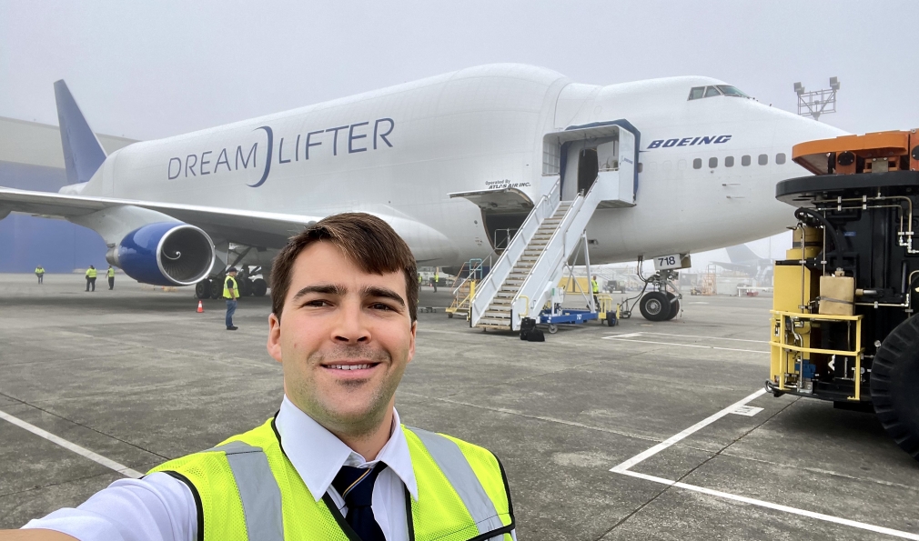 Johansson now flies for Atlas Air, including this 747-400 (shown near Seattle), modified to carry aircraft parts between U.S. assembly lines and various international destinations.
