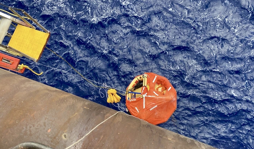 A crewmember photographed the raft, which was barely visible from the Horizon Reliance. “Many of the deckhands were on their first trip at sea, and for most this was their first actual, non-simulated rescue,” says Johansson.