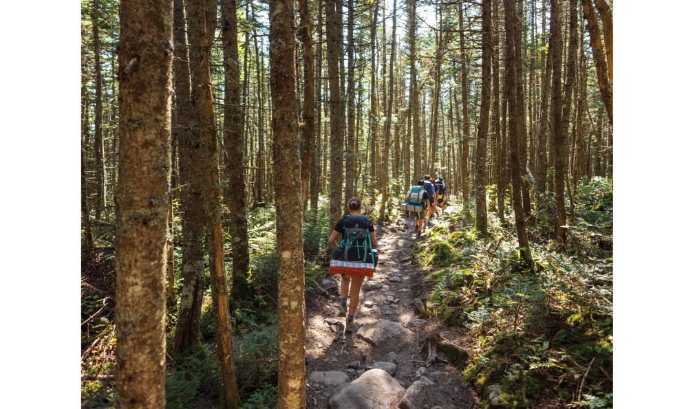 Coleader Josh Lee ’26 and his group set out on a three-day hiking excursion on September 8 at Baker Pond Trailhead. He was joined by Anika Roy ’28, Dean Gustavson ’28, Claire Kull ’28, Benjamin Hsieh ’28, Will Pittman ’28, Agatha Curylo ’28, Charlie Peers ’28, and coleader Mia Jones ’27.
