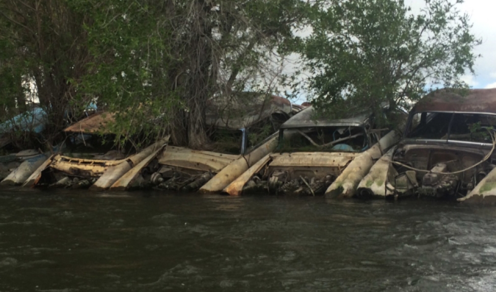 Every generation tries its hand at controlling the river. In the 1950s old cars were piled along the banks in Colorado. (Courtesy Colin McDonald/Disappearing Rio Grande Expedition)