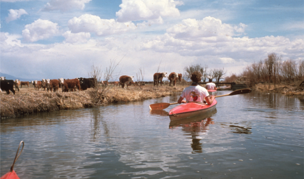 Realizing there was more water in the irrigation ditches than the river, McDonald took his canoe wherever the water led. (Courtesy Erich Schlegel/Disappearing Rio Grande Expedition)