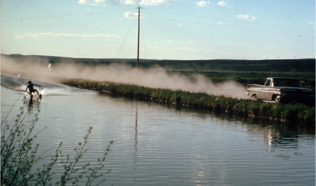 Reicher waterskis—New Mexico style—in an irrigation ditch.