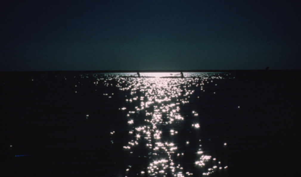 Trying to make time and stay out of the blistering heat, the expedition members paddle Elephant Butte Reservoir at night.