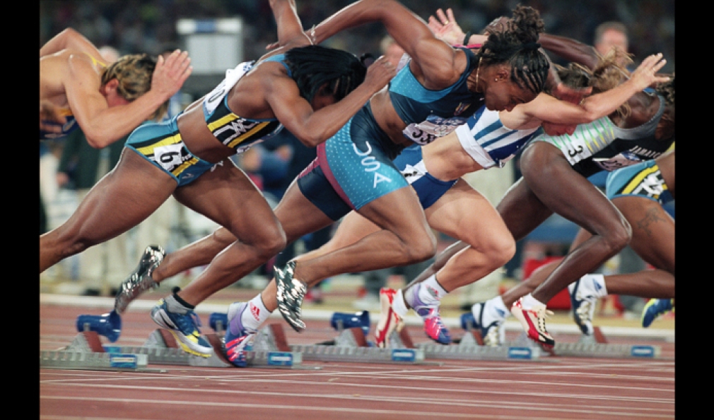 Many photographers jockey for position at the finish line, but Kluetmeier found compelling imagery in the starting blocks. Here Team USA sprinter Marion Jones takes off at the Sydney Games in 2000. (She was later stripped of her five medals after she admitted to using steroids.)