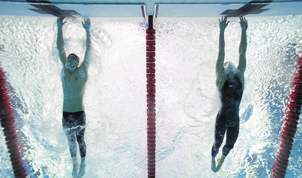 Kluetmeier’s shot of Michael Phelps, left, shows Phelps beating Milorad Cavic to win gold in the 100-meter butterfly at the 2008 Olympics. Courtesy Getty Images.