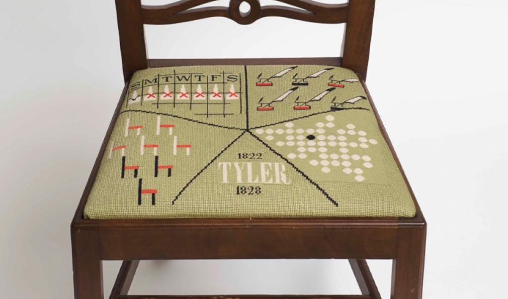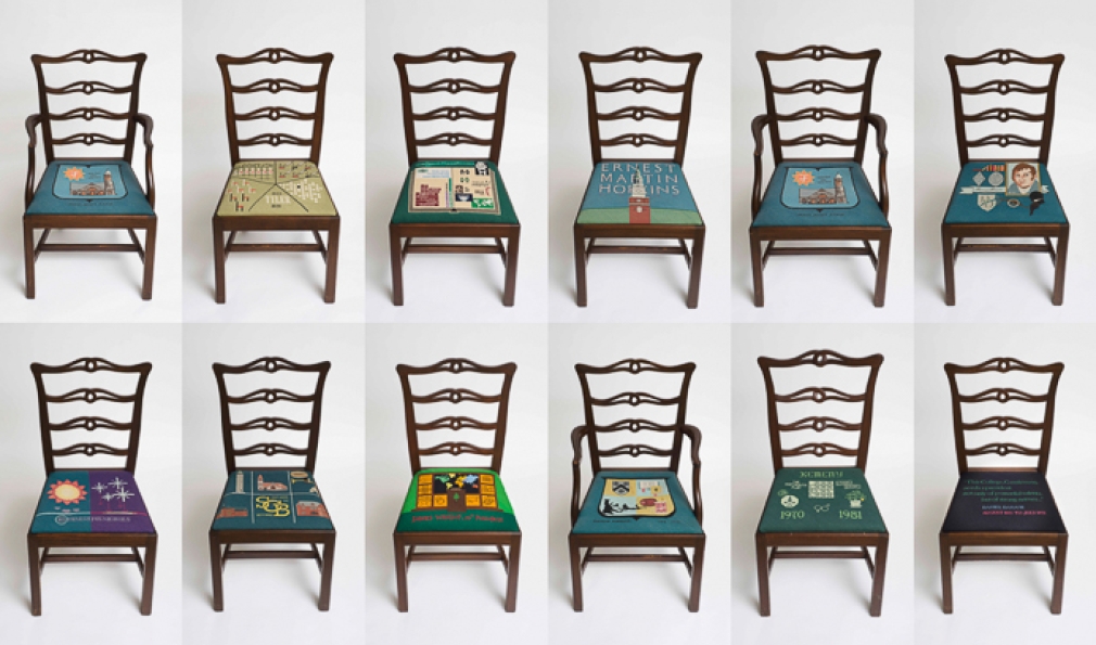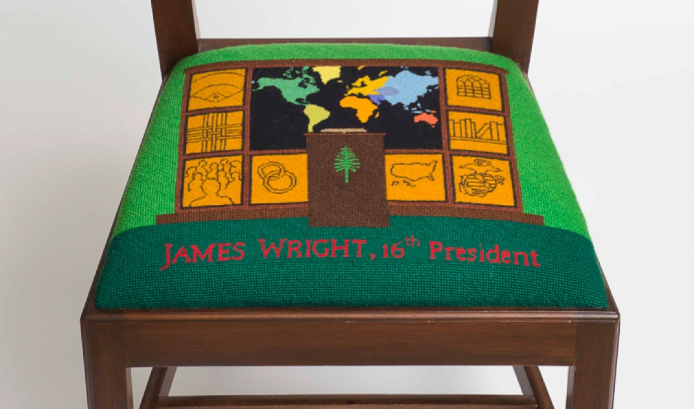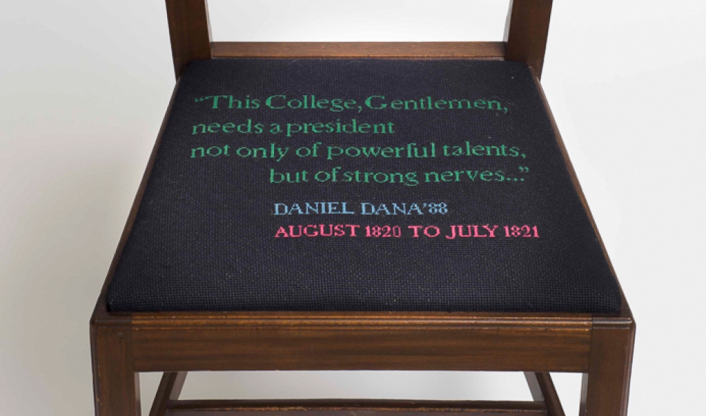 Eighteen presidents have served the College, but only after they retire do they attain a true seat of power at the president’s mansion. Sixteen custom seat cushions adorn the chairs used in the dining room there, each representing a past president. (Jim Kim’s is currently in the works.) The cushions originated in 1958, thanks to an idea from College designer John Scotford ’38, needlework by descendants of John Sloan Dickey ’29, among others, and chairs crafted in the student woodworking shop.