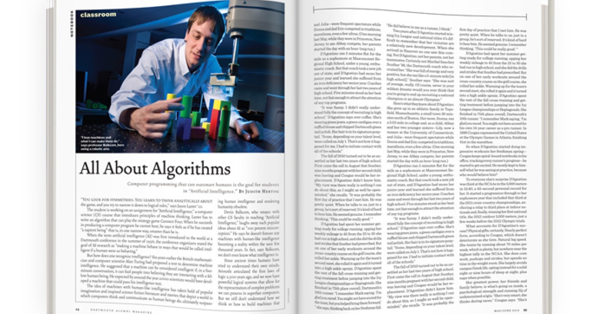 Balkcom doesn’t try to define intelligence. He just has his students focus on what computer scientists do best: creating algorithms to solve logical problems. Although most of his assignments are toy problems—writing programs to play games such as tic-tac-toe, Connect Four, chess and Sudoku—students can apply the skills they learn to real-world logical problems.