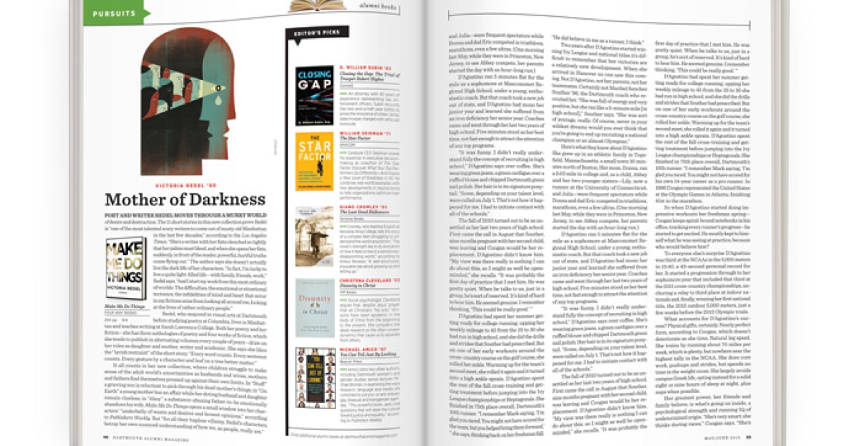 Redel, who majored in visual arts at Dartmouth before studying poetry at Columbia, lives in Manhattan and teaches writing at Sarah Lawrence College. Both her poetry and her fiction—she has three anthologies of poetry and four works of fiction, which she tends to publish in alternating volumes every couple of years—draw on her roles as daughter and mother, writer and academic. She says she likes the “lavish restraint” of the short story: “Every word counts. Every sentence counts. Every gesture by a character and leaf on a tree better matter.”