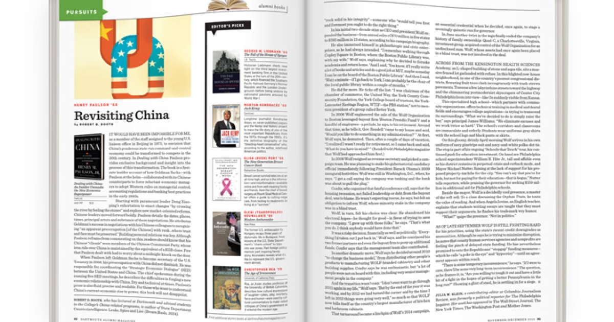 When Paulson left Goldman Sachs to become secretary of the U.S. Treasury in 2006, his preoccupation with China did not diminish. He was responsible for coordinating the “Strategic Economic Dialogue” (SED) between the United States and China. The chief spokesman during the ensuing five SED meetings, he describes the difficulties in forging a new economic relationship with China. Dry and technical at times, Paulson’s prose is also fluid, precise and readable. For those who want to understand China’s current economic rise to power, this book will not disappoint. —Robert D. Booth