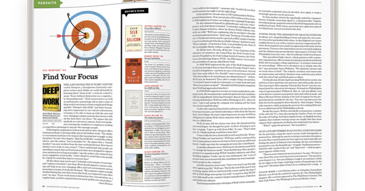 Feel a bit distracted at work? Join the crowd. Newport, a Georgetown University computer science prof, thinks we could all benefit by learning about “deep work,” a term he coined to mean “focus without distraction on a cognitively demanding task.” “Both neuroscience as well as performance psychology tell us that a state of deep work is necessary to learn complicated things quickly,” Newport tells DAM, “and that’s becoming more important in our current information economy, to be able to keep up with the new and ever-changing complex systems that interact with all the data that’s out there.” He argues that his methods are relevant to anyone, from new graduates entering the workforce to employees seeking a competitive advantage to anyone who manages people.