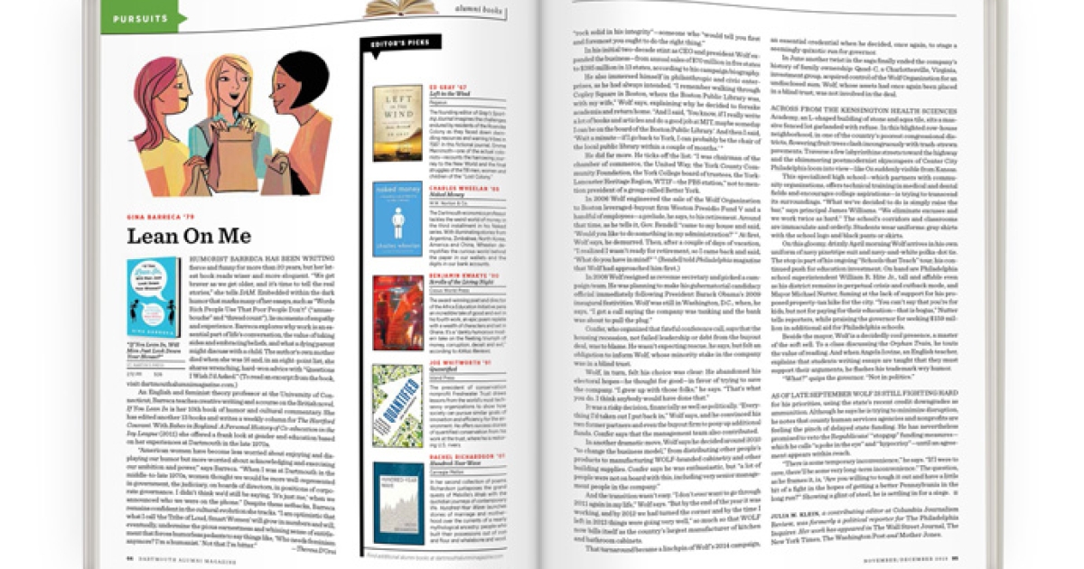 “American women have become less worried about enjoying and displaying our humor but more worried about acknowledging and exercising our ambition and power,” says Barreca. “When I was at Dartmouth in the middle-to-late 1970s, women thought we would be more well-represented in government, the judiciary, on boards of directors, in positions of corporate governance. I didn’t think we’d still be saying, ‘It’s just me,’ when we announced who we were on the phone.” Despite these setbacks, Barreca remains confident in the cultural evolution she tracks. “I am optimistic that what I call ‘the Tribe of Loud, Smart Women’ will grow in numbers and will, eventually, undermine the pious earnestness and whining sense of entitlement that forces humorless pedants to say things like, ‘Who needs feminism anymore? I’m a humanist.’ Not that I’m bitter.” —Theresa D’Orsi