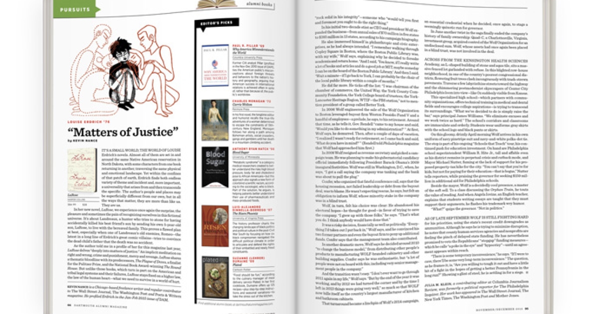 As the author told me in a profile of her for this magazine last year, LaRose delves “deeply into matters of justice.” An implicit meditation on right and wrong, crime and punishment, mercy and revenge, LaRose shares a thematic bloodline with its predecessors, The Plague of Doves, a finalist for the Pulitzer Prize, and the National Book Award-winning The Round House. But unlike those books, which turn in part on the American and tribal legal systems and their failures, LaRose stays fixed on a higher law, the law of the human heart—what we need to survive in a world of hurt. —Kevin Nance