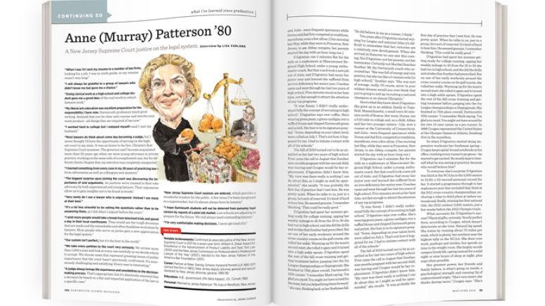 “My liberal arts education was excellent preparation for the responsibility I have now. Dartmouth professors teach good writing, demand that you be clear and concise and rewrite your work product—all things that are required of me now.”