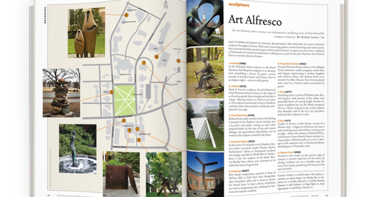 At the Wheelock Street entrance to the Hood Museum, Joel Shapiro’s sculpture is an abstract form resembling a dancer. Its grace—4,000 pounds of wooden beams and bronze bent at 45-degree angles—seems to defy gravity.