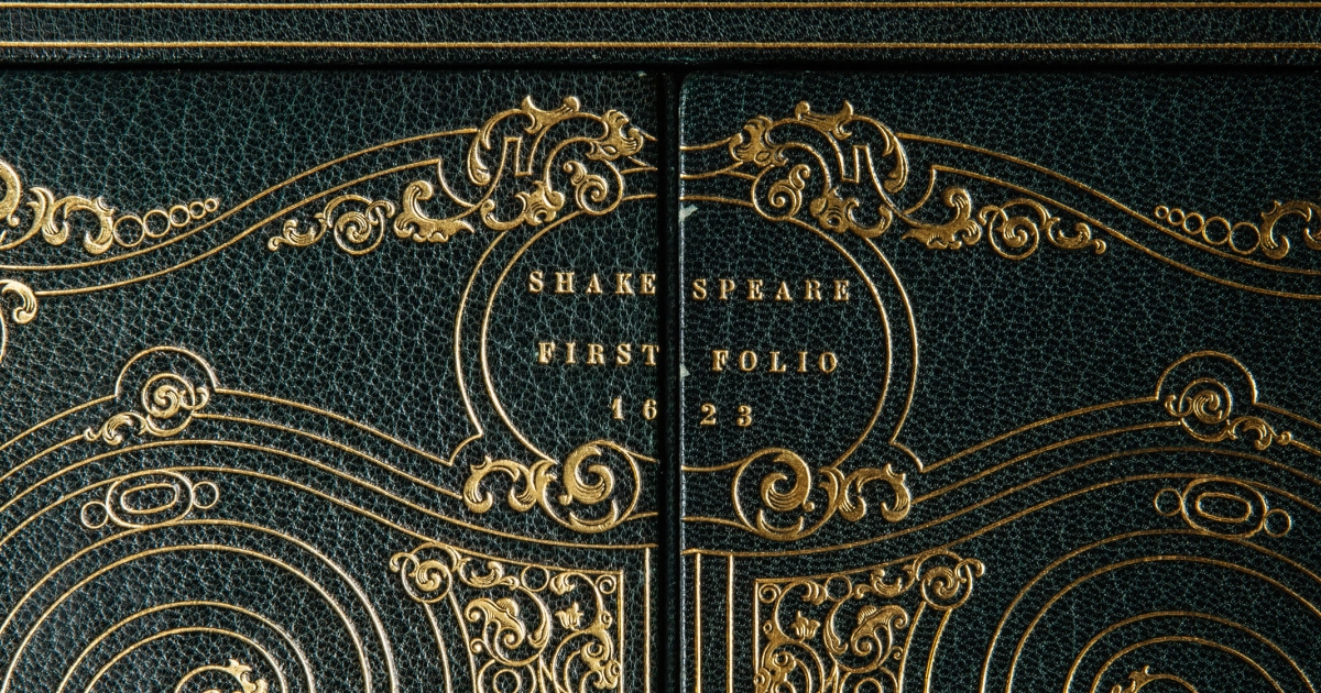 The title page features a portrait of Shakespeare engraved by artist Martin Droeshout. The playwright’s name appears in the largest type, not unlike today’s bestselling authors.