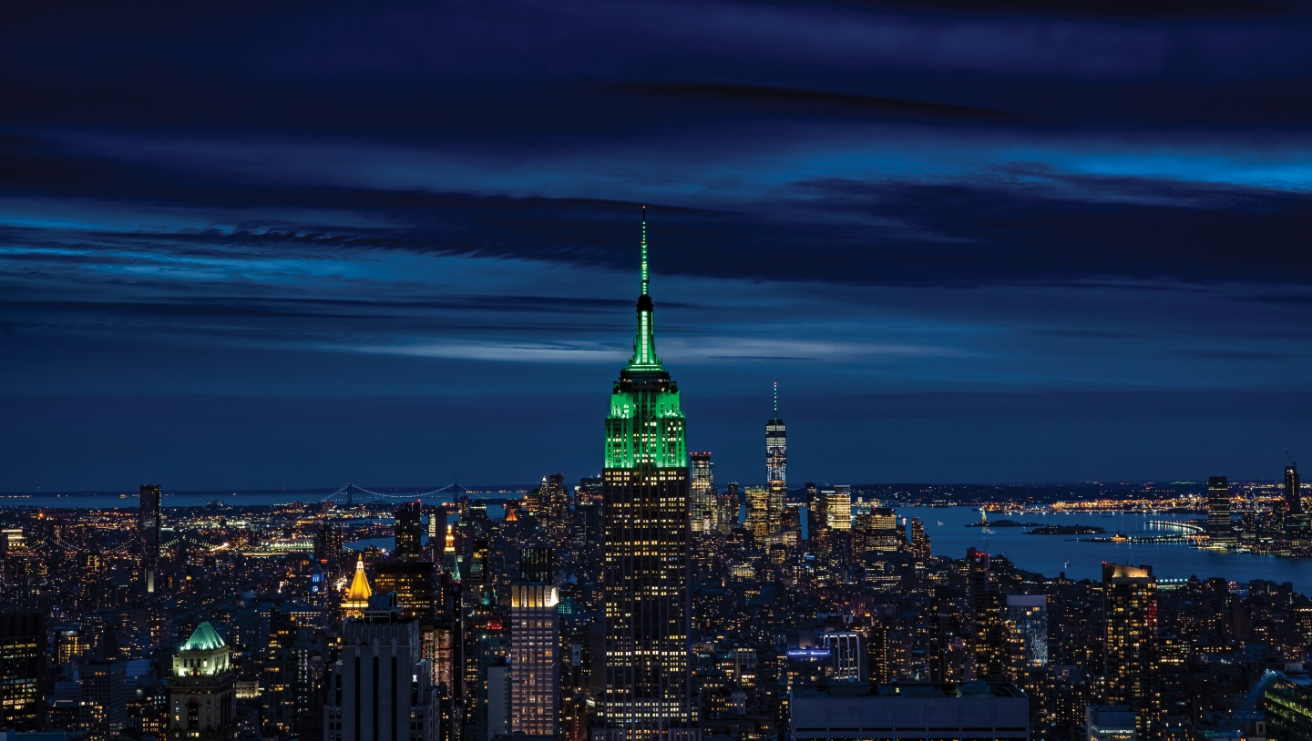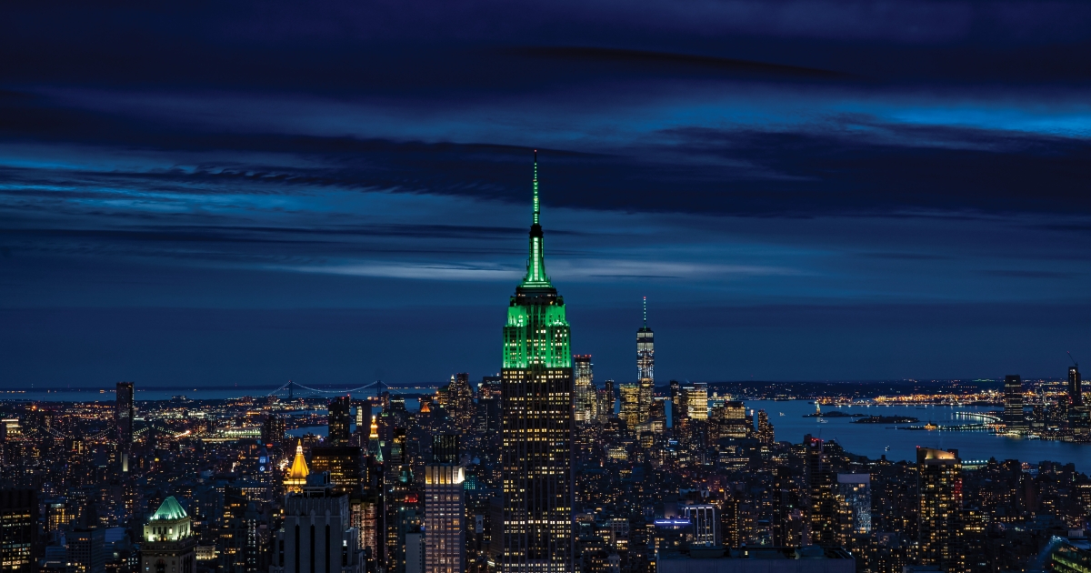 The Empire State Building cast a green glow on January 12 in celebration of Dartmouth’s 250th anniversary. Greenlighting Day featured lit landmarks from coast to coast, including Seattle’s giant ferris wheel, Toronto’s CN Tower, Niagara Falls, and, of course, Dartmouth Hall.
