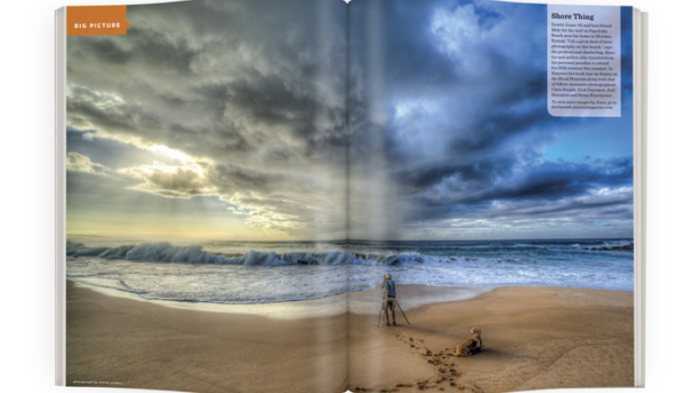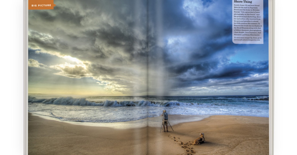 Dewitt Jones ’65 and best friend Mele hit the surf on Papohaku Beach near his home in Molokai, Hawaii. “I do a great deal of wave photography on this beach,” says the professional shutterbug, director and author, who traveled from his personal paradise to attend his 50th reunion this summer. In Hanover his work was on display at the Hood Museum along with that of fellow classmate photographers Chris Knight, Dick Durrance, Joel Sternfeld and Heinz Kluetmeier.