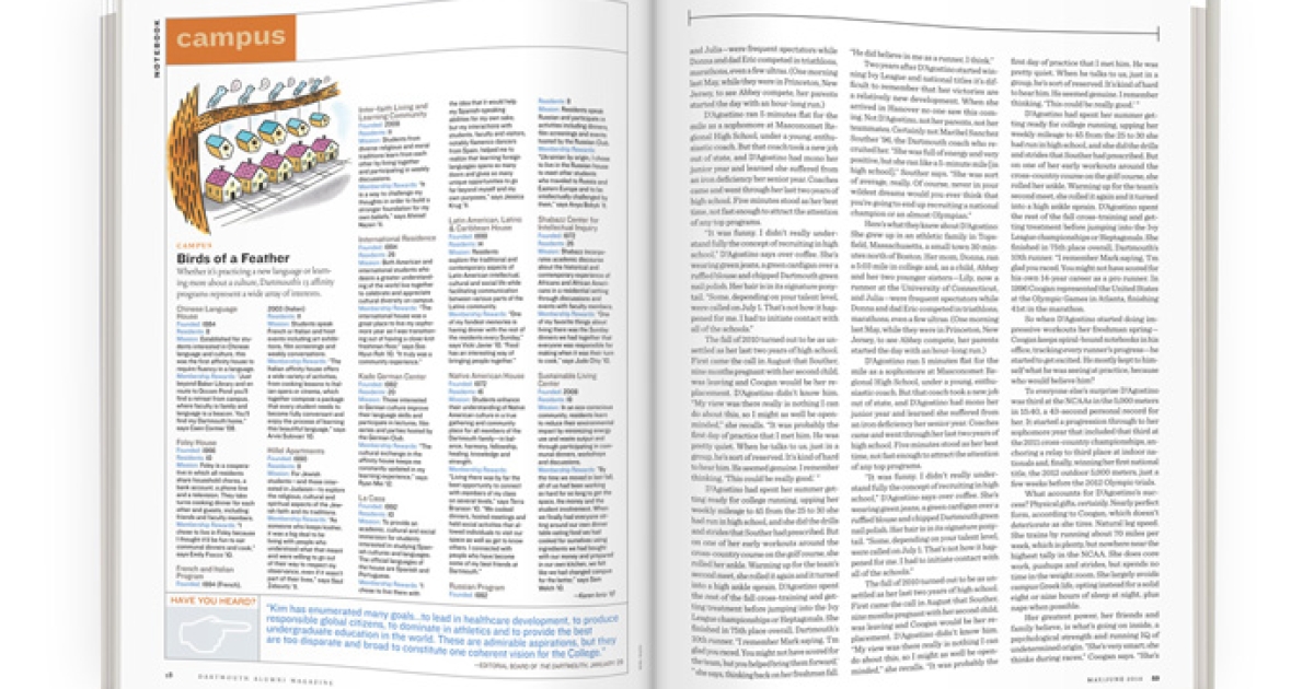 Membership Rewards: “Just beyond Baker Library and en route to Occom Pond you’ll find a retreat from campus, where faculty is family and language is a beacon. You’ll find my Dartmouth home,” says Caen Contee ’08.