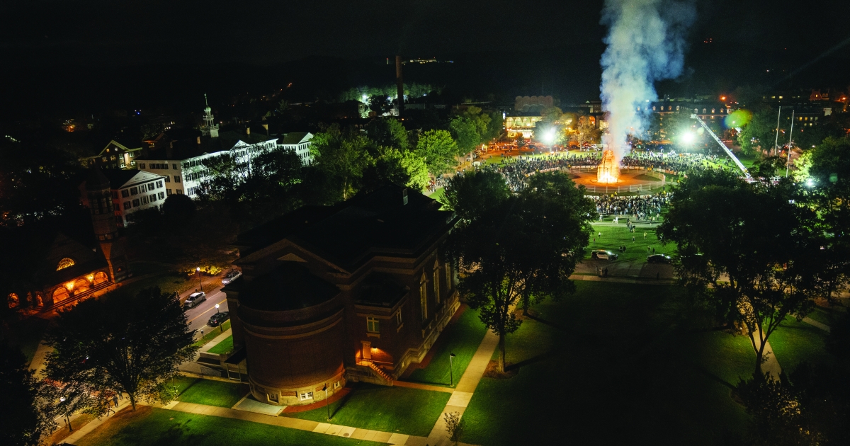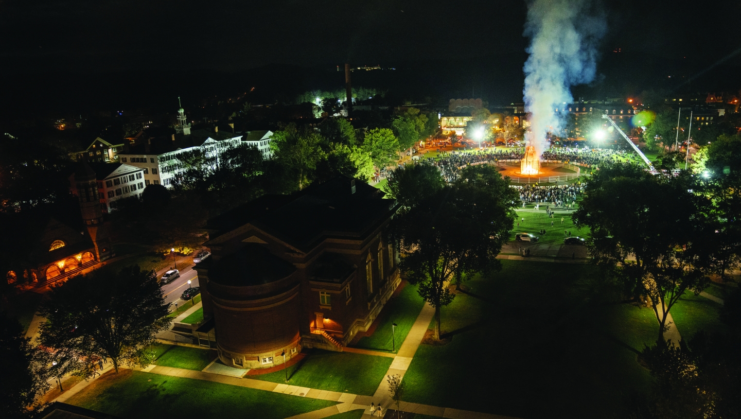 Dartmouth Night lit up the Green on October 11, when freshmen ran around the bonfire, as mandated by tradition. President William Jewett Tucker, class of 1861, hosted the first Dartmouth Night in 1895.