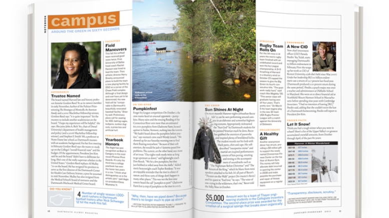 The board named Harvard law and history professor Annette Gordon-Reed ’81 as its newest member in early November. Author of the Pulitzer Prize-winning The Hemingses of Monticello: An American Family and a 2010 MacArthur Fellowship winner, Gordon-Reed says “it is quite important” for the trustees to include another academician on the board. “I hope my experiences will be helpful,” she says. She joins John A. Rich ’80, chair of Drexel University’s department of health management and policy (and a 2006 MacArthur Fellowship winner), and Stephen F. Smith ’88, a professor at Notre Dame law school, as Dartmouth trustees with an academic background. For her first meeting in February Gordon-Reed says she wants to study up on the College’s “overall financial state” and the budget. Of the appointment, President Jim Kim said he and the board “didn’t have to deliberate for long. She’s one of the really superstar scholars in the United States.” Gordon-Reed replaces Al Mulley ’70 on the board. He has resigned his position to serve as the first director of the Dartmouth Center for Health Care Delivery Science, a post he assumed in mid-November. Mulley has also resigned from the Medical School’s board of overseers and the Dartmouth-Hitchcock Medical Center board.
