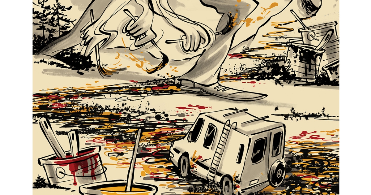 On the front of my camper van, instead of a license plate, there’s a miniature version of Jackson Pollock’s famous drip painting Convergence. It’s the only hint that the van is not on a family camping trip or making Amazon deliveries.