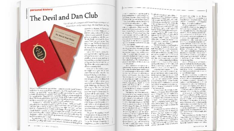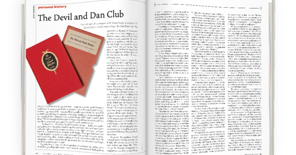 We’ve met for the annual reading of the Devil and Dan Club in seven different states, often just the three of us, but many times with kids and spouses and significant others, including, on occasion, some Dartmouth classmates. (Mike Swartz ’82 was part of that Boundary Waters trip; he’s never forgotten it.) We’ve joked that when we get old and have trouble getting around, we’ll gather overnight somewhere and read on December 31 and then again the next morning, picking off two years in 24 hours.