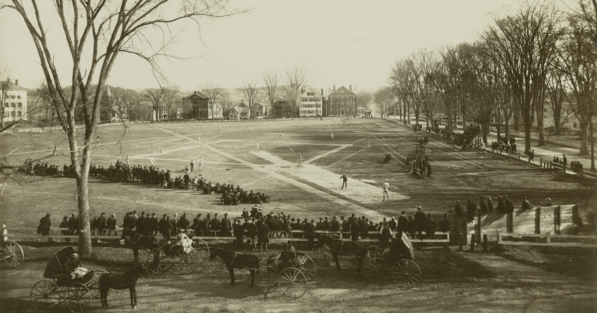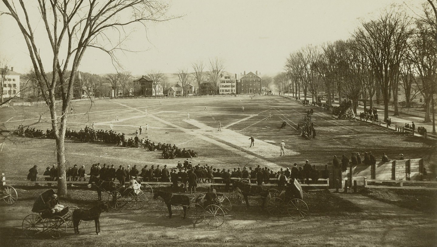 America’s pastime came to Dartmouth in autumn of 1865 with the creation of a 30-member College association that organized teams of nine based upon class years and instituted class contests. The Aegis reported the sport was a welcome addition, given “the lack of interest displayed in the foot-ball game.”