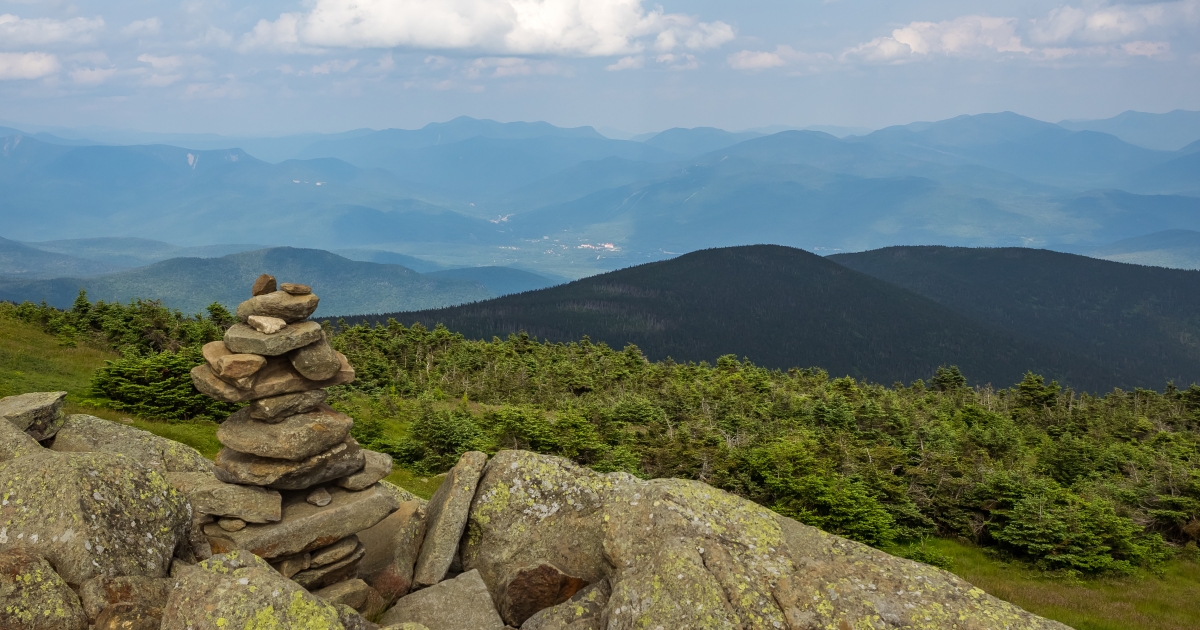 Wearing fresh clothes felt great—for about five minutes. The lower woods on Mt. Cube were like a green-leafed oven, with blinding white light over each exposed rock outcropping. Whenever we could, we dunked our bandanas into the streams for a brief infusion of cold. We didn’t make great time, and drank most of the water that was supposed to last us for the next 20 miles. Unbelievably, at one road crossing a kind soul had left an insulated grocery bag filled with ice, bottled water, and granola bars, with a handwritten note saying: “Stay safe in this heat! Enjoy your hike!” We never would have made it without that water.