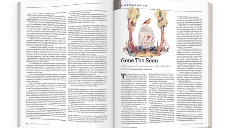 The trip across the river to Dan & Whit’s General Store in Norwich is never quick with my college friend Lizzie Eldredge ’81. This time—Homecoming weekend 2015—was no exception. After pulling into the front lot, she quickly disappeared inside with her 17-year-old daughter, Lizabelle, in tow. I didn’t see her for 45 minutes. I wound my way through the maze-like, wooden-floored aisles, past every type of merchandise known to man. Deep in the back of the 22,600-square-foot store I found my friend, giggling over a plastic elephant-shaped watering can. “This is what you need in California!” she said with a laugh. I finally extricated her and we all three set out on a drive to Orford, New Hampshire, under spectacular October skies.