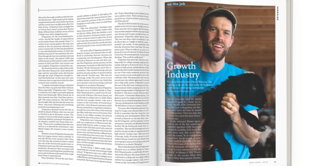 Chuck Wooster says he never thought he would be a farmer. An involved member of the Dartmouth Outing Club as an undergraduate, the Massachusetts native did know he wanted to work outdoors. “Once you make that decision, there aren’t that many choices,” Wooster says.