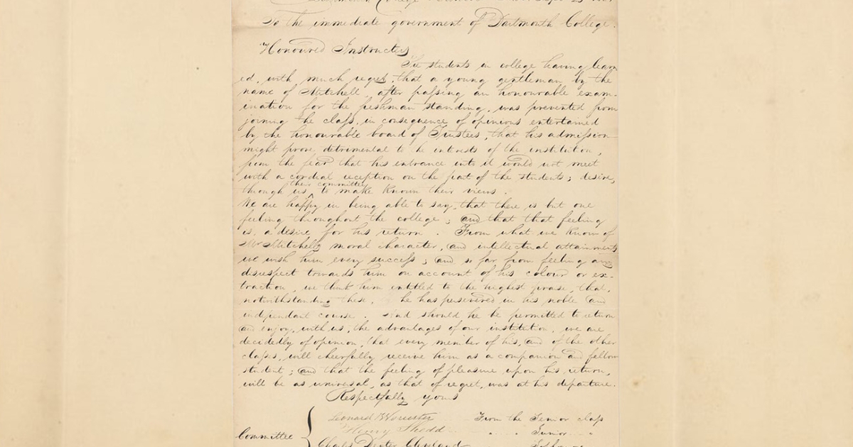 Students Rally: Undergrads petitioned the trustees on Mitchell’s behalf. “We think him entitled to the highest praise…he has persisted in his noble and independent course,” they wrote. “Should he be permitted to return…we are decidedly of opinion that every member of his, and of the other classes, will cheerfully receive him as a companion and fellow student, and that the feeling of pleasure upon his return will be as universal as that of regret was at his departure.”