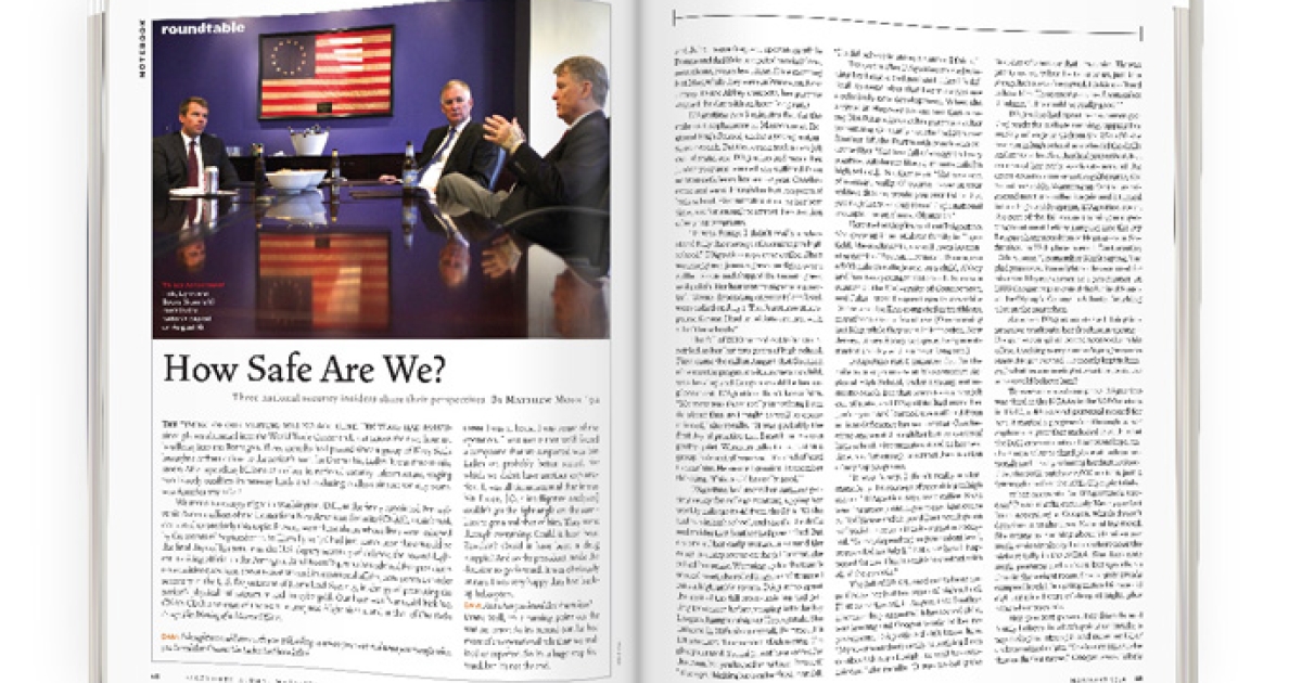 The timing of our meeting was no accident. Ten years had passed since planes slammed into the World Trade Center and, just across the river from us, headlong into the Pentagon. Three months had passed since a group of Navy Seals brought a cathartic close to the nation’s hunt for Osama bin Laden. It was time to take stock: After spending billions of dollars in national security infrastructure, waging two bloody conflicts in faraway lands and enduring endless airport security scans, was America any safer?