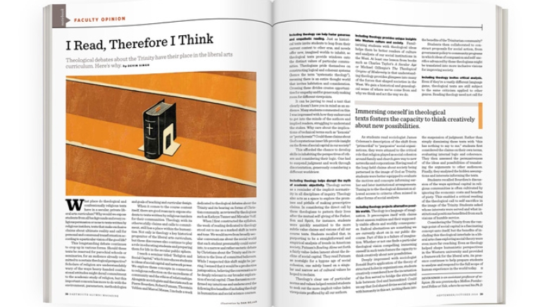 When I first constructed the syllabus, the week of reading dedicated to theology stood out to me as a marked shift in texts and tone. We would move from broadly secular conversations about the social world that each student presumably could enter into, to a narrow and rather esoteric debate by Christians about the Trinity and its relation to the lives of committed believers. While I suspected this shift might be jarring, I sensed that it would be a productive juxtaposition, believing the conversation to be deeply relevant to our broader exploration of social capital. Class discussion confirmed my intuitions and underscored the following five benefits of including theology in humanities and social science courses.