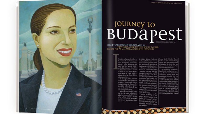 “I used to tell people I worked in the world’s oldest profession,” says Eleni Tsakopoulos Kounalakis, making a joking reference to her career with her family’s California land-development firm. That was before she answered a call last fall from the U.S. State Department—while on a golf course—and was offered her choice of three ambassadorships.
