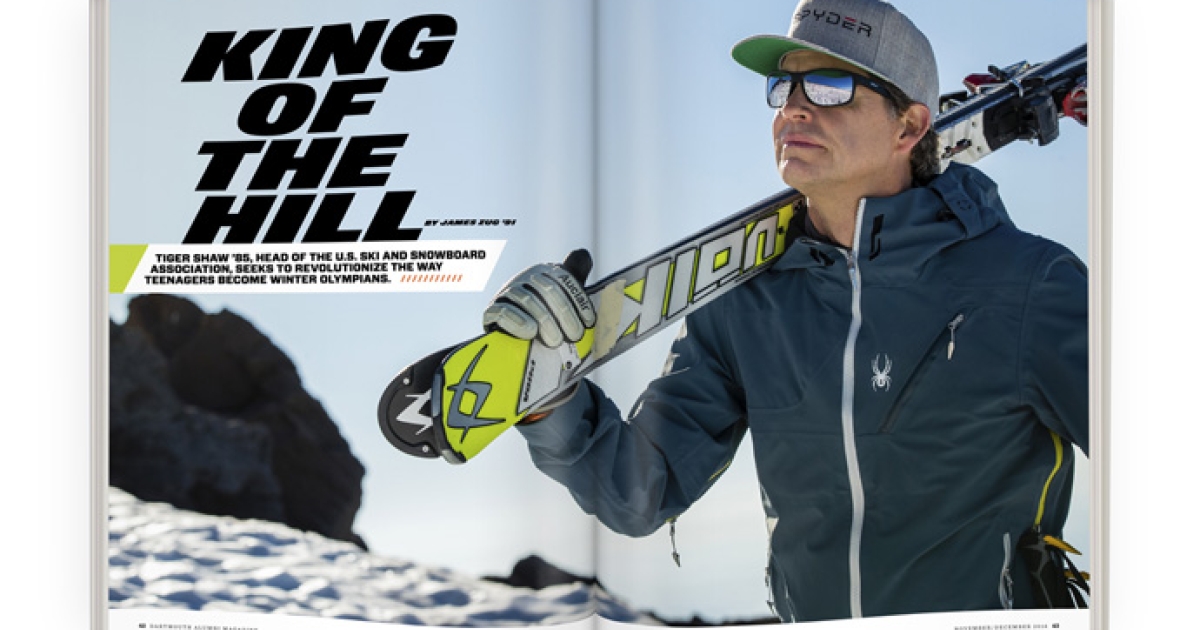 “His two main goals,” says Jeff Kirwood ’91, a former Dartmouth skier and now a Dartmouth ski team parent, “are to help our athletes to be the best in the world and to raise a ton of money. He hasn’t been intimidated by USSA boards—there are so many people there and a lot of egos, a lot of tough personalities, all smart and successful people with strong views—and he’s handled them beautifully. Tiger is a great listener. He is deliberate. He is a consensus builder. He makes good decisions. People see that.”