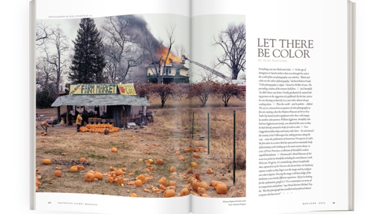 Dartmouth’s Hood Museum of Art owns two prints by Sternfeld, including his most famous work, McLean, Virginia. It’s a tantalizing, almost inexplicable shot, captured in 1978. Viewers who do not know its backstory express wonder as they linger over the image and try to figure out what it depicts. Viewing the image with knowledge of the backstory is an entirely different experience. (If you’re looking for the explanation, google it.) “It is a masterpiece in terms of its composition and palette,” says Hood director Michael Taylor. “But this photograph has troubled and perplexed almost everyone who has seen it.”