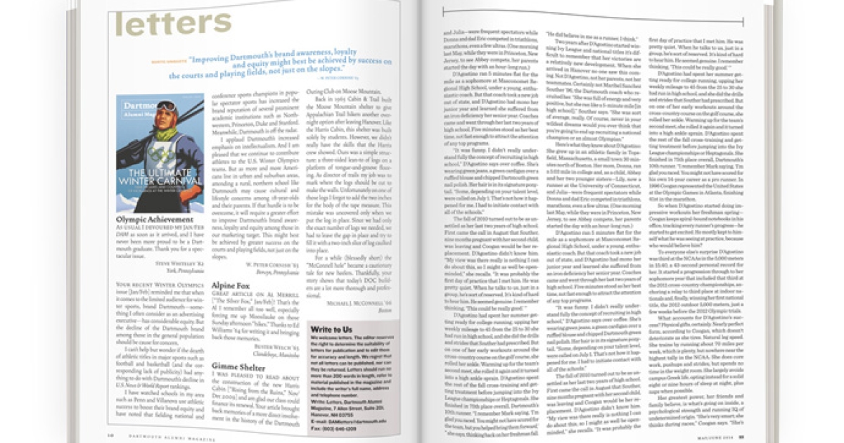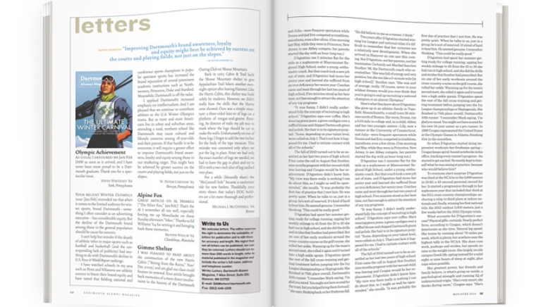 Your recent Winter Olympics issue [Jan/Feb] reminded me that when it comes to the limited audience for winter sports, brand Dartmouth—something I often consider as an advertising executive—has considerable equity. But the decline of the Dartmouth brand among those in the general population should be cause for concern.