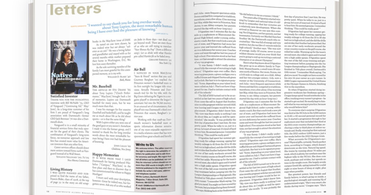 Mr. Baseball The article by Stu Deane ’65 about Tony Lupien [“Clutch Performance,” May/June] brought back a lot of memories. Lupien was Dartmouth baseball for many years, but he was much more than that.