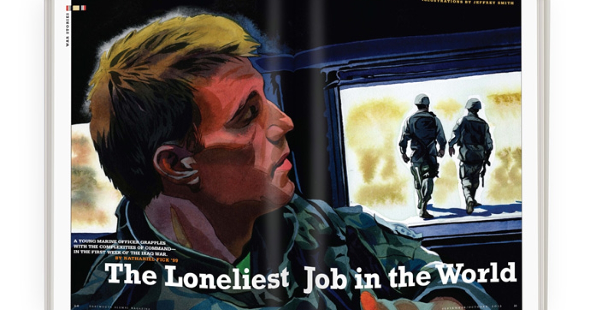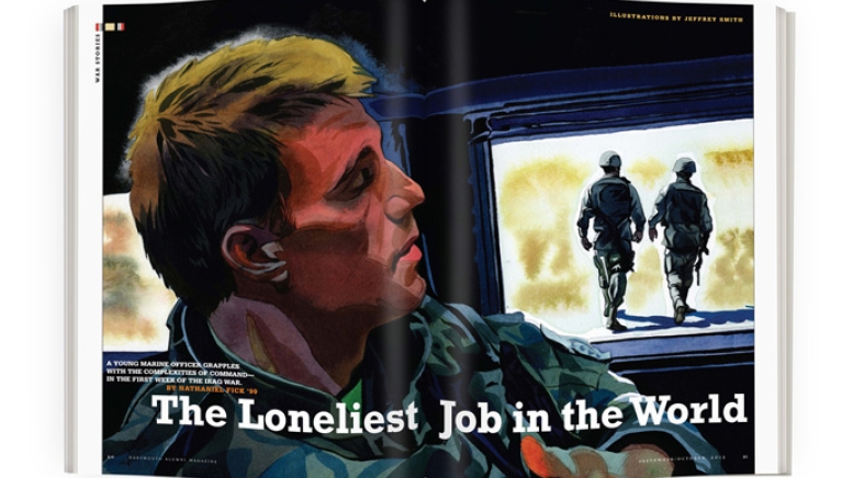 Nathaniel Fick, a classics and government major as an undergraduate, served as a Marine infantry officer in Afghanistan, Pakistan and Iraq between 2001 and 2003. He was also a civilian instructor at the Afghan Counterinsurgency Academy in Kabul in 2007 and a member of the presidential transition team at the Department of Veterans Affairs in 2008. Since 2009 he has been CEO of the Center for a New American Security in Washington, D.C., where he lives with his wife and two young daughters. In April he was elected to Dartmouth’s board of trustees. This story is from his book, One Bullet Away, copyright © 2005 by Nathaniel Fick. Reprinted by permission of Houghton Mifflin Harcourt Publishing Co. All rights reserved.