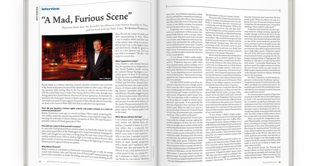 In 1987, after I had graduated from medical school, my friend John Ackerly ’80 [who later served as president of the Washington, D.C.-based International Campaign for Tibet] and I bought one-way tickets to Hong Kong. We took trains across China and traveled overland across Tibet to climb as high as we could on Mount Everest. After three months of travel we returned to Lhasa, arriving at the beginning of a series of Tibetan protests against Chinese occupation.