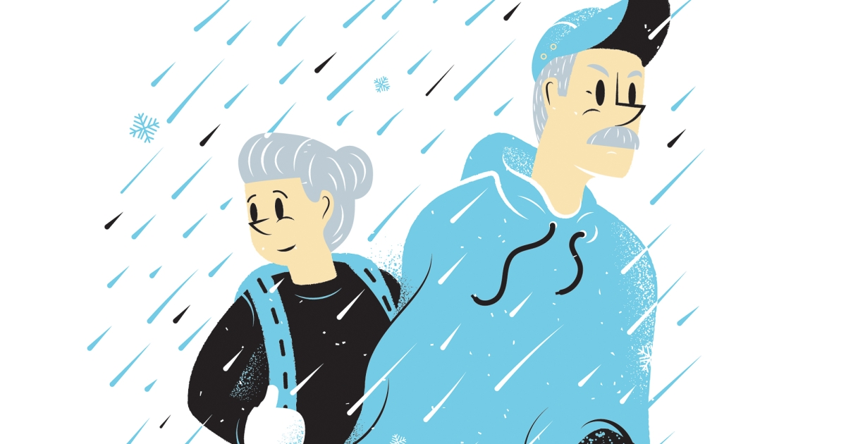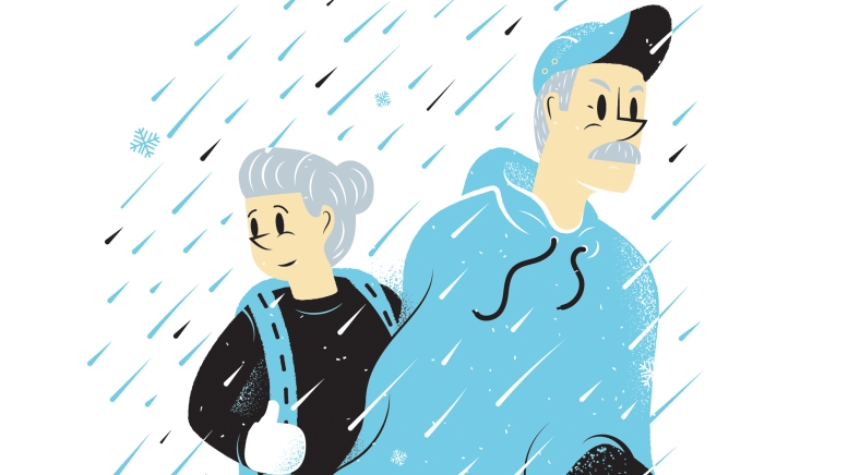 As the organizer of my class’ 50th-reunion climb of Dartmouth’s own New Hampshire mountain, I was dutifully following the last of my determined classmates to the summit. “Damn, would this guy keep on going?” I thought. His rain gear—a $2 transparent plastic poncho—was flapping in the wind. My fingers were freezing in thin liner gloves, and the slippery rocks challenged my no-longer-stellar sense of balance.