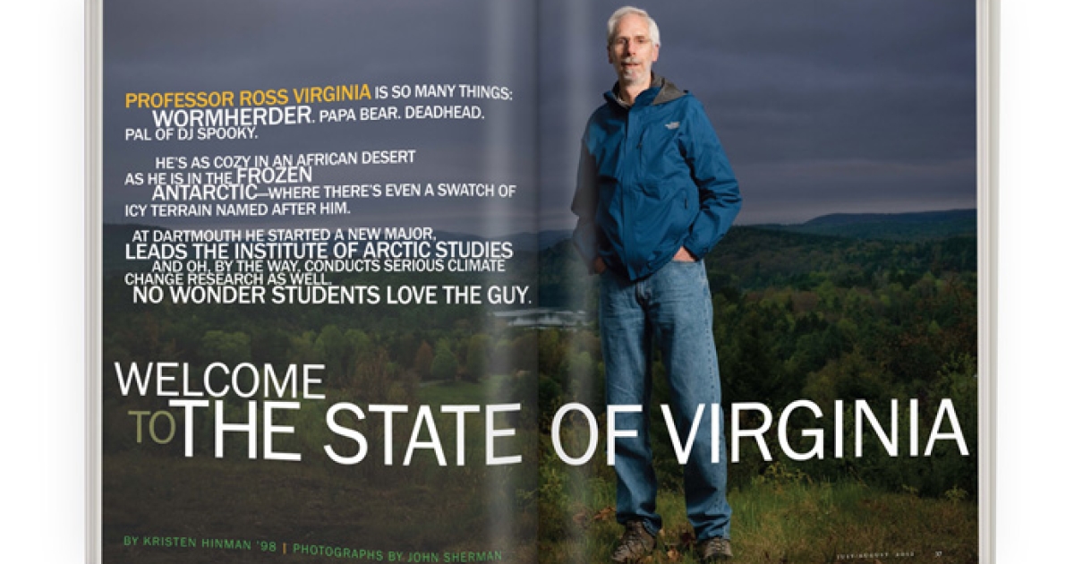 At 61, he is starting to think more about his legacy. Colleagues, however, say Virginia shows no signs of decelerating. “If you look at the pattern of Ross’ life since he’s been at Dartmouth, it’s been a pattern of quiet innovation,” observes Jack Shepherd, professor emeritus of environmental studies. “He changed the program, he improved its FSP and now he’s gotten this big grant, expanding the College’s international reach yet again. I suspect as long as he can continue working on [the IGERT] and generating ideas for it, which I think he’s been brilliant at, he’ll keep going. Why not?”