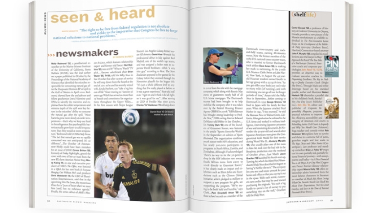 The October 28 Entertainment Weekly could have been mistaken for an issue of DAM. Connie Britton ’89, formerly of Friday Night Lights, graced the cover with two of her co-stars from the new FX show American Horror Story; Mindy Kaling ’01, co-star and executive producer of NBC’s The Office, was featured in a Q&A for her new book Is Everyone Hanging Out Without Me?; and producer Chris Meledandri ’81, the CEO of Illumination Entertainment, said that in the upcoming film The Lorax, the mysterious Once-ler is “pure of heart when we meet him [and] has no nefarious agenda.” Finally, the series debut of A&E’s Monster In-Laws, which features relationship expert and former trial lawyer Mel Robbins ’90, was an EW “What to Watch” TV pick.