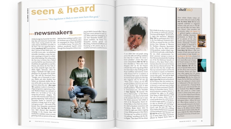 Adam Lipsius ’94 directed and produced his first feature film, the romantic tennis comedy 16-Love, which was released on January 20 and stars teens Lindsey Shaw and Emmy-nominated Chandler Massey. In December Lipsius’ Denver-based production company Uptown 6 purchased the rights to the graphic novel Nanny & Hank: Retirement is Hell. The tale of retirees whose world is turned upside down by a close encounter with an angry vampire “is the funniest take on mortality and morality to ever splash the pages of a comic book,” Lipsius told The Geek Files blog.
