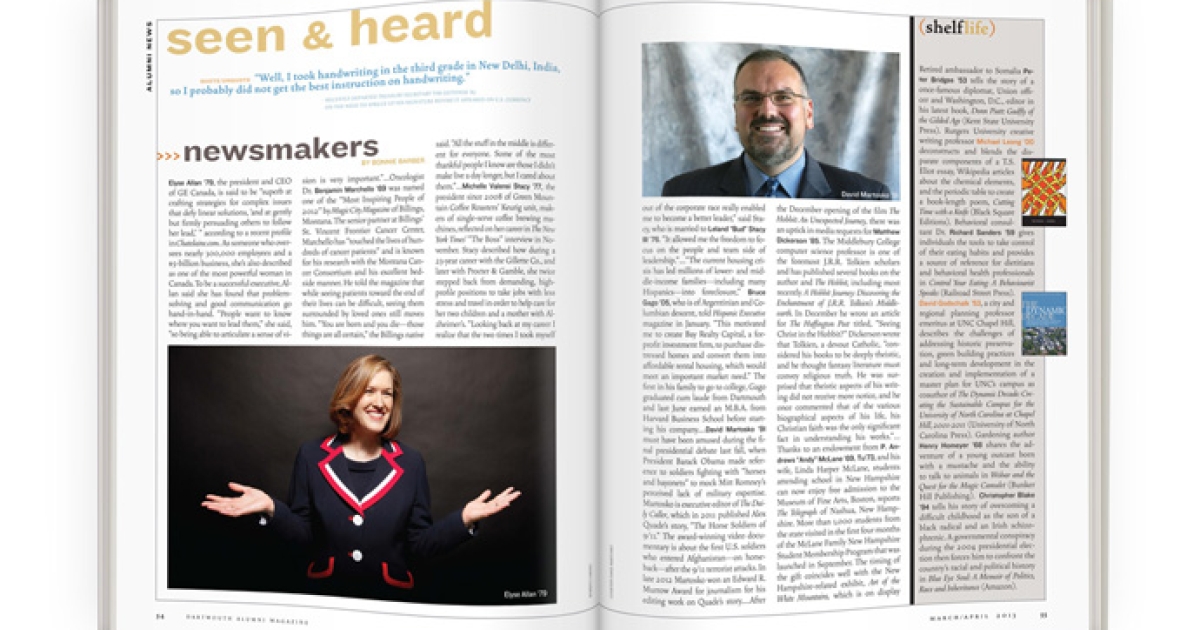 Elyse Allan ’79, the president and CEO of GE Canada, is said to be “superb at crafting strategies for complex issues that defy linear solutions, ‘and at gently but firmly persuading others to follow her lead,’ ” according to a recent profile in Chatelaine.com. As someone who oversees nearly 300,000 employees and a $5-billion business, she’s also described as one of the most powerful woman in Canada. To be a successful executive, Allan said she has found that problem-solving and good communication go hand-in-hand. “People want to know where you want to lead them,” she said, “so being able to articulate a sense of vision is very important.”…