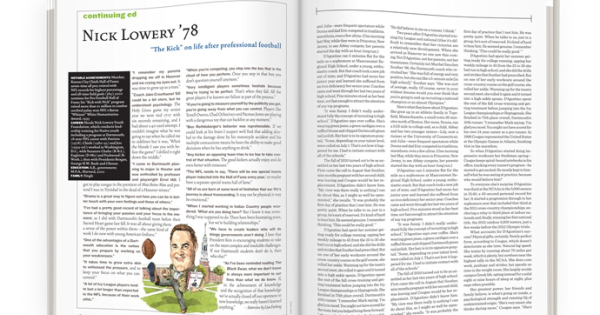 “I’ve had a pretty good record of talking about the importance of bringing your passion and your focus to the moment, as I did with Dartmouth’s football team before their Sacred Heart game last fall. It was all about giving them a sense of the power within them—the same kind of work I do now with young American Indians.”