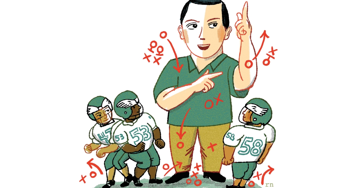 Ryan Paganetti ’14 grew up a fan of the New England Patriots and their coach, Bill Belichick. The hooded one inspired Paganetti, a young running back, in football as well as school. “My first real curiosity about economics came when I learned he was an economics major,” Paganetti says. Injuries curtailed his college football career but allowed him to coach at his Bedford, Massachusetts, high school during his last two years at Dartmouth.