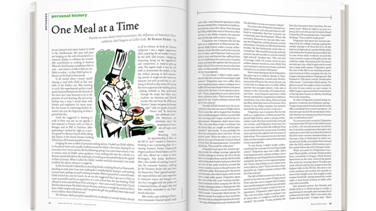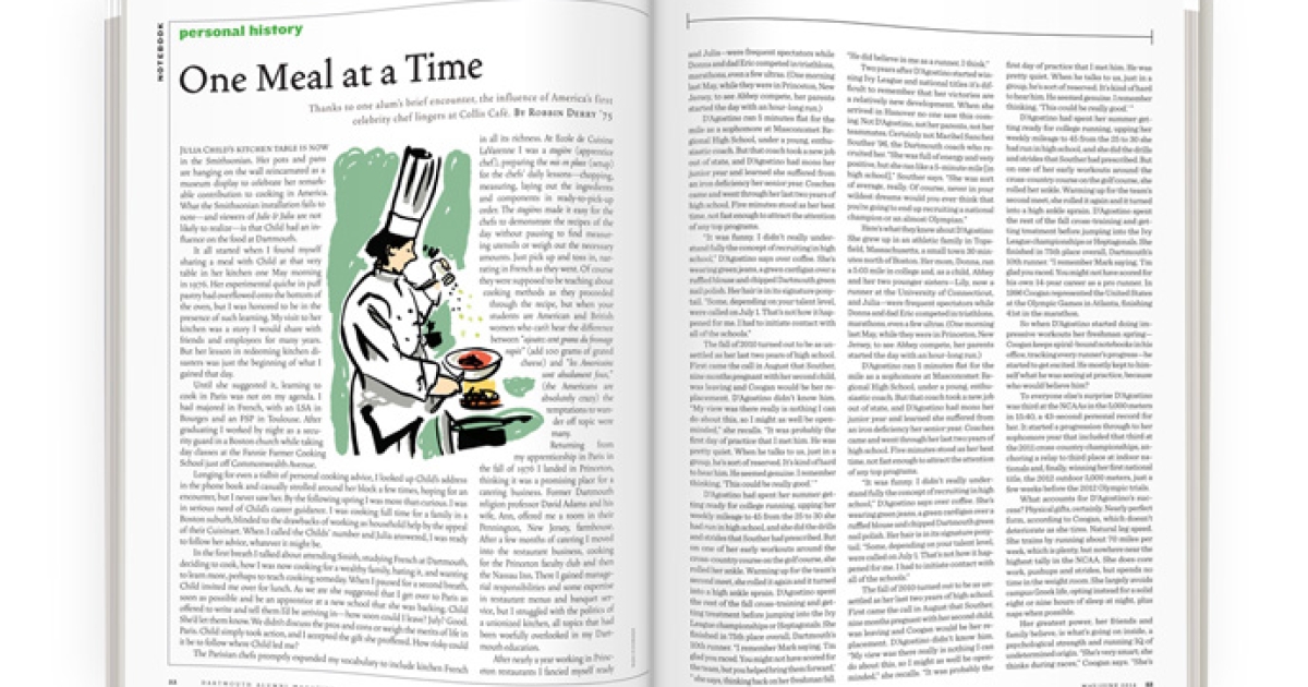 That lunch with Child back in 1976 started a little train of events that has affected the lives of now thousands of Dartmouth students who eat and work at Collis. Although I’ve moved on, and Collis has moved on, it began with Child’s advice and her legacy—a love of fresh food and a love of sharing both cooking and eating.