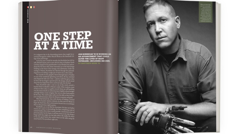 If Kuniholm can’t find a way to prod faster development of improved prosthetic arms, he thinks at least he can make the existing technology lighter, easier to wear and operate, and more comfortable. Kuniholm believes there are more similarities between shoes and prosthetics—even arms—than the casual observer might see. Both are used to connect parts of the human body to the outside world: At that point of contact they need to fit snugly, breathe, be comfortable, lightweight and yet strong and durable. Moreover, the techniques used in crafting a shoe are similar to those needed to build a comfortable prosthetic. The task requires cutting and shaping leather or other more advanced fabrics to fit over a stump, and fasteners to make it stay in place.